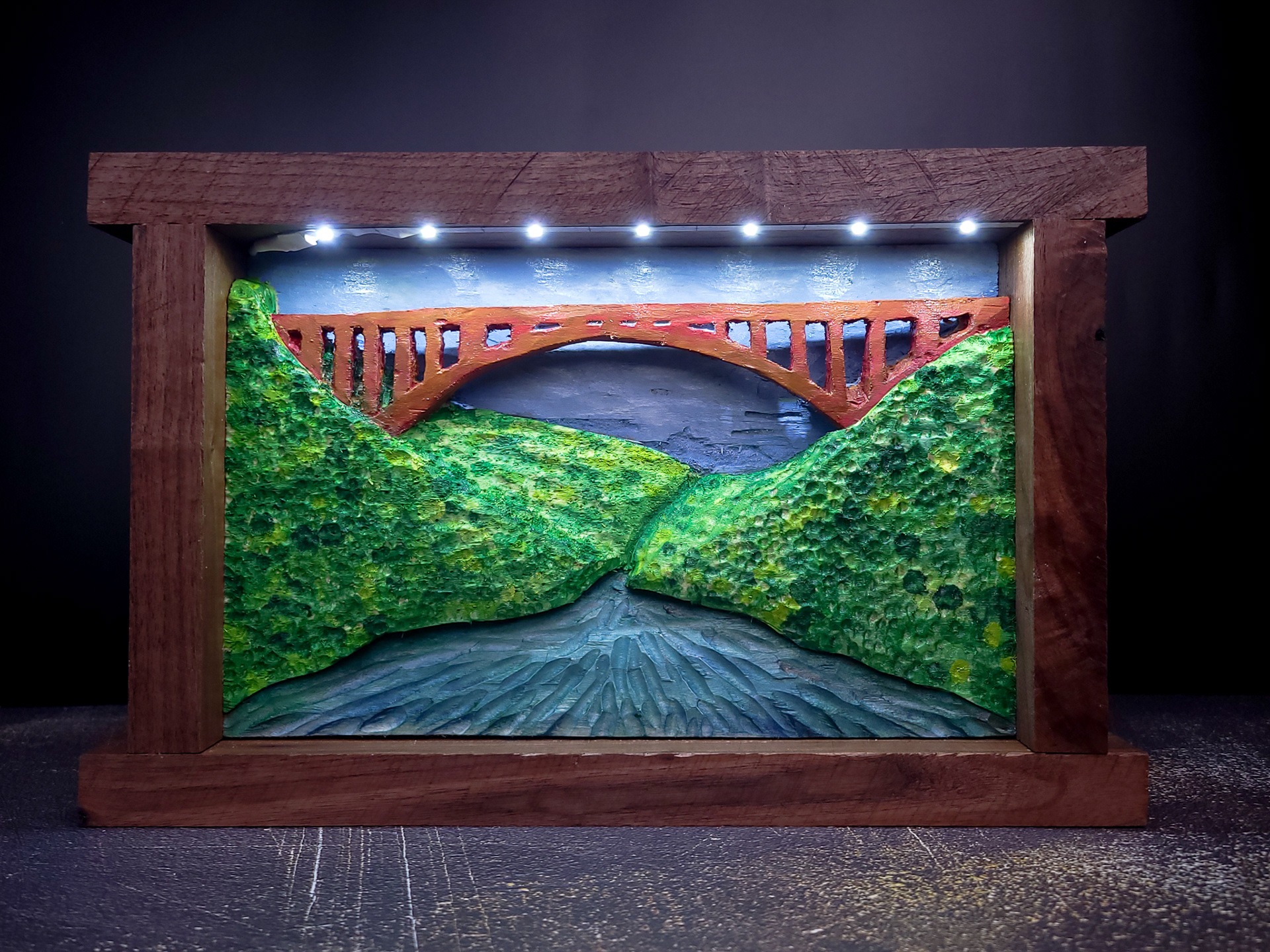 Relief Carvings made from wood sourced in West Virginia to showcase the Mountain State's natural beauty as well as her heritage